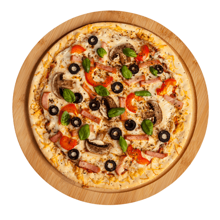 Domates sosu | mozzarella | sarımsaklı marine karides | karışık salata | parmesan